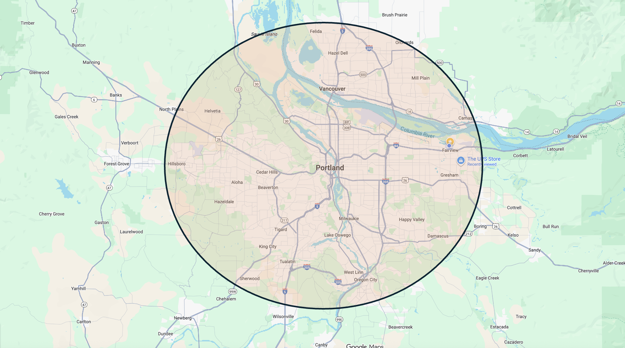 This map shows our included service area. For listings beyond our service area, additional fees may apply.